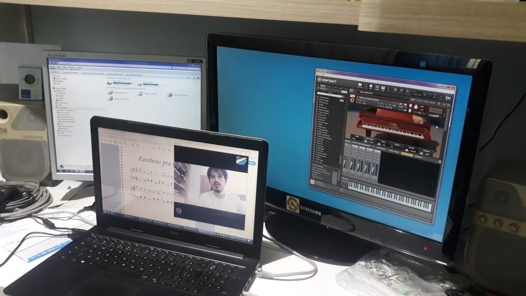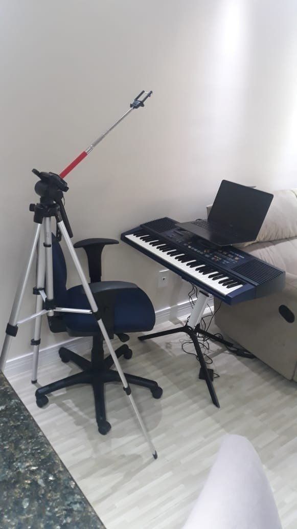 Câmeras para mostrar a digitação do instrumento e para falar com o professor.